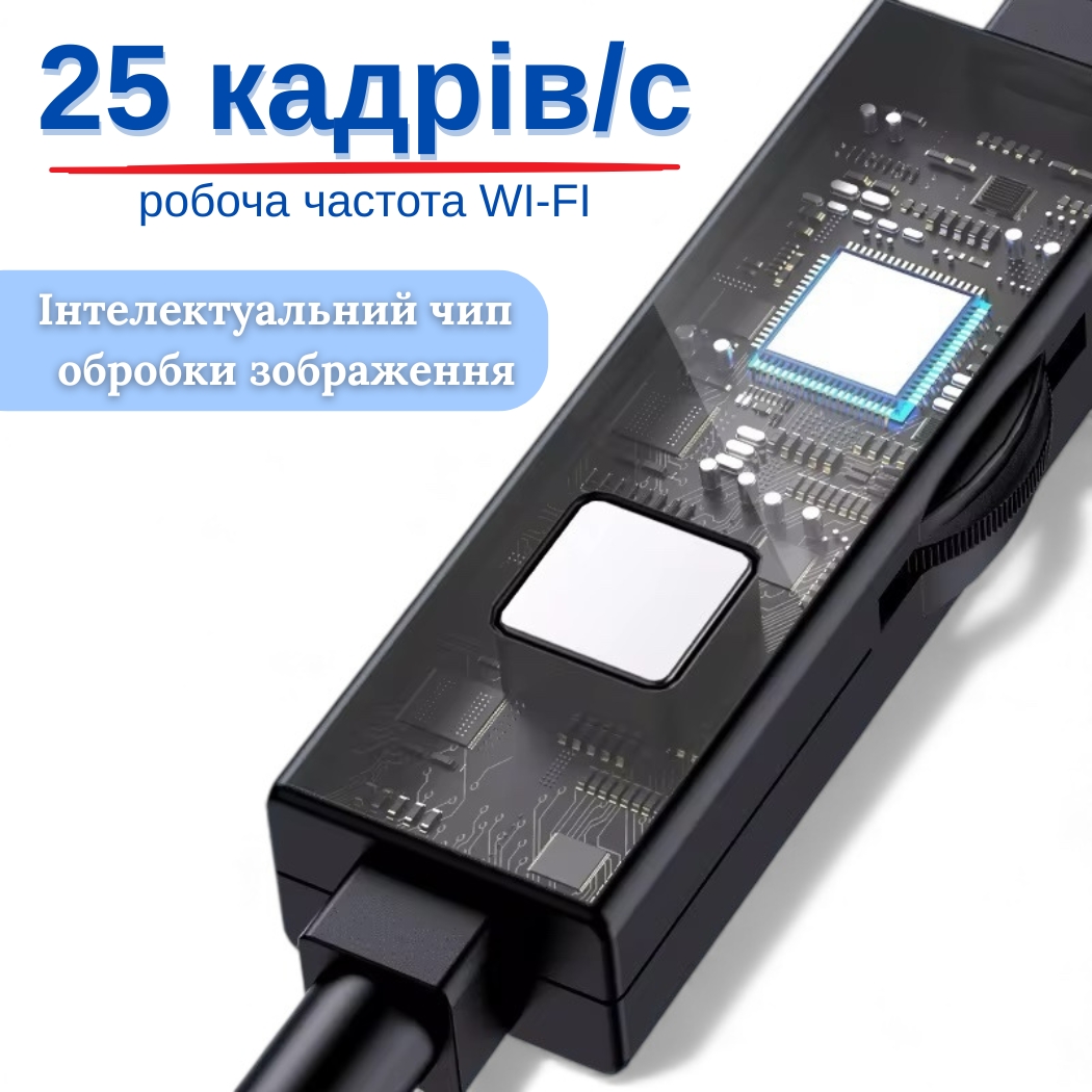 Эндоскоп Profinstrument – это высокотехнологичное устройство, обеспечивающее съемку с частотой 25 кадров/с , обеспечивающее плавное и четкое изображение. Передача данных осуществляется через Wi-Fi , что гарантирует стабильный сигнал без задержек.