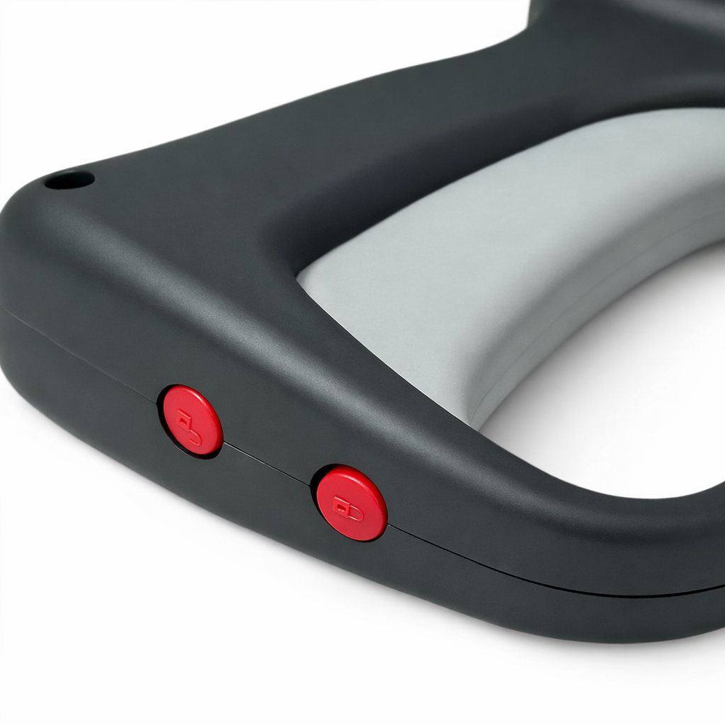 Пистолет оснащен предохранителем блокировки спускового механизма, который фиксирует крючок в закрытом положении и предотвращает случайное нажатие, обеспечивая дополнительную безопасность при работе и транспортировке.