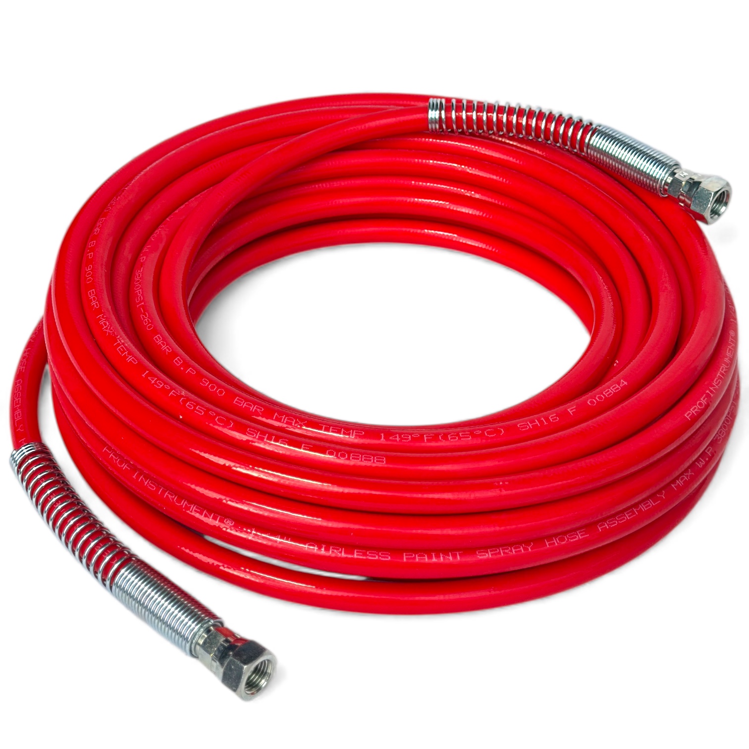 Фарбувальний шланг високого тиску 1/4″ (червоний) призначений для фарбувального обладнання безповітряного розпилення. Шланги — це поліамідні шланги з подвійним шаром фіброволокна та зовнішнім поліуретановим покриттям із пружиною з обох кінців.