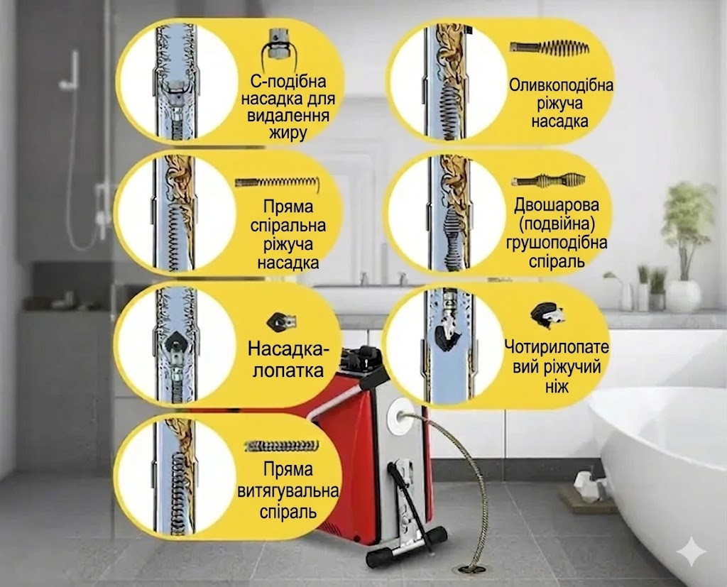 - Набір змінних насадок для різних типів засмічень