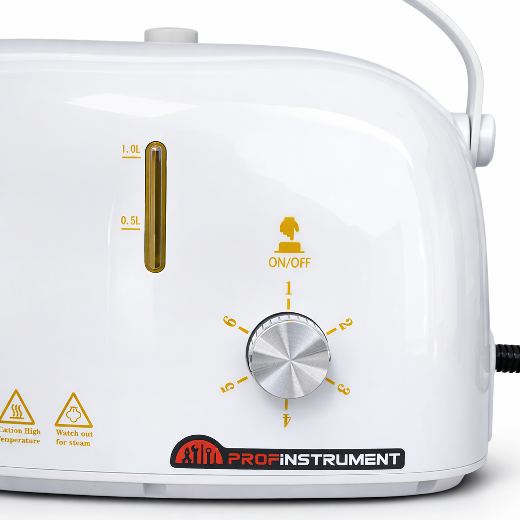 Модель оснащена містким баком для води на 1.0 л та зручним регулятором із 6 рівнями подачі пари, завдяки чому можна точно налаштувати потужність очищення — від делікатного догляду за тканинами до інтенсивного видалення жиру та сильних забруднень.
