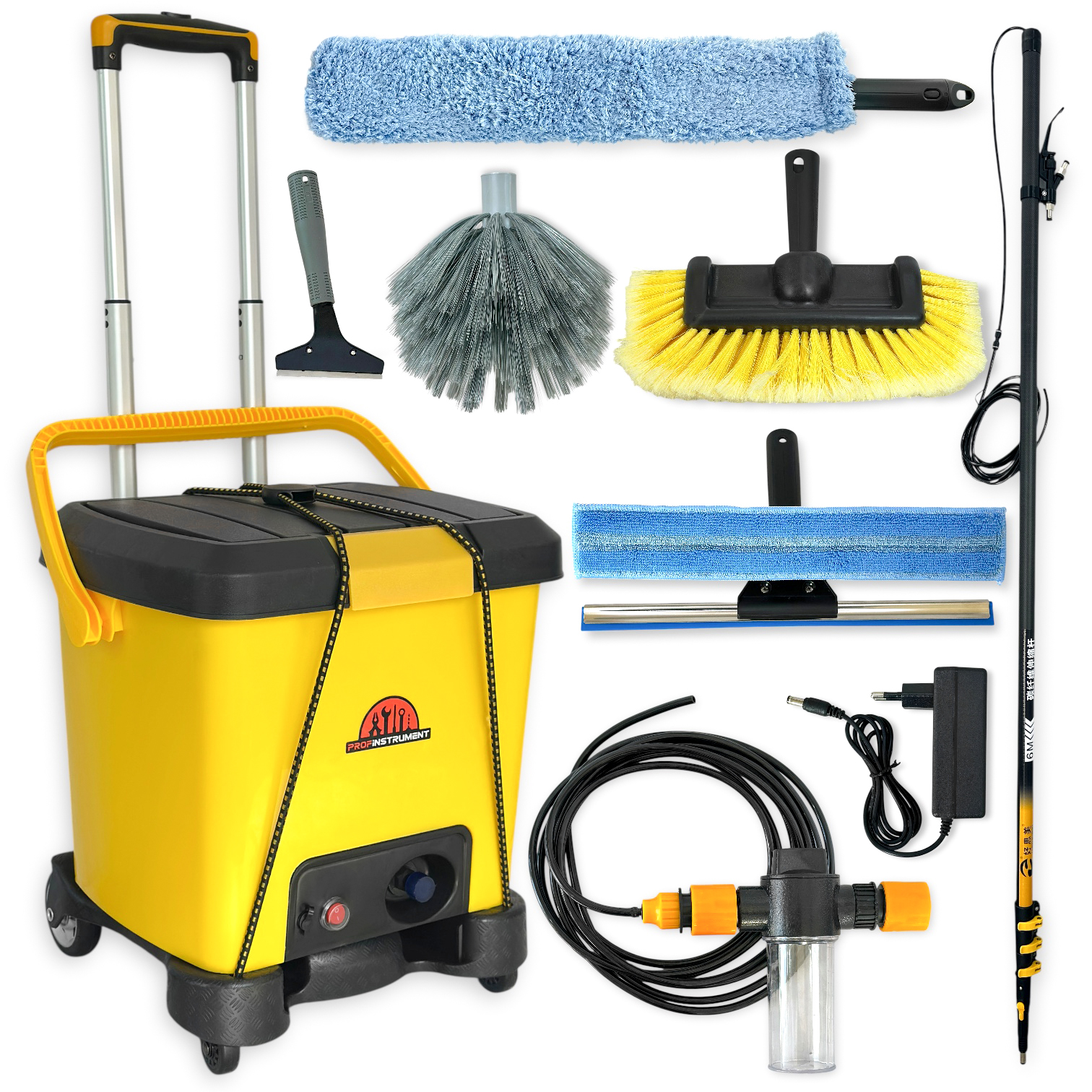 Портативна система Profinstrument QX-G60 — це зручний комплект для миття вікон, фасадів, панорамного скла та інших поверхонь на висоті. Завдяки телескопічній штанзі довжиною до 6 метрів ви можете легко очищати вікна на верхніх поверхах, зимові сади, балкони та фасади будівель без використання драбини.